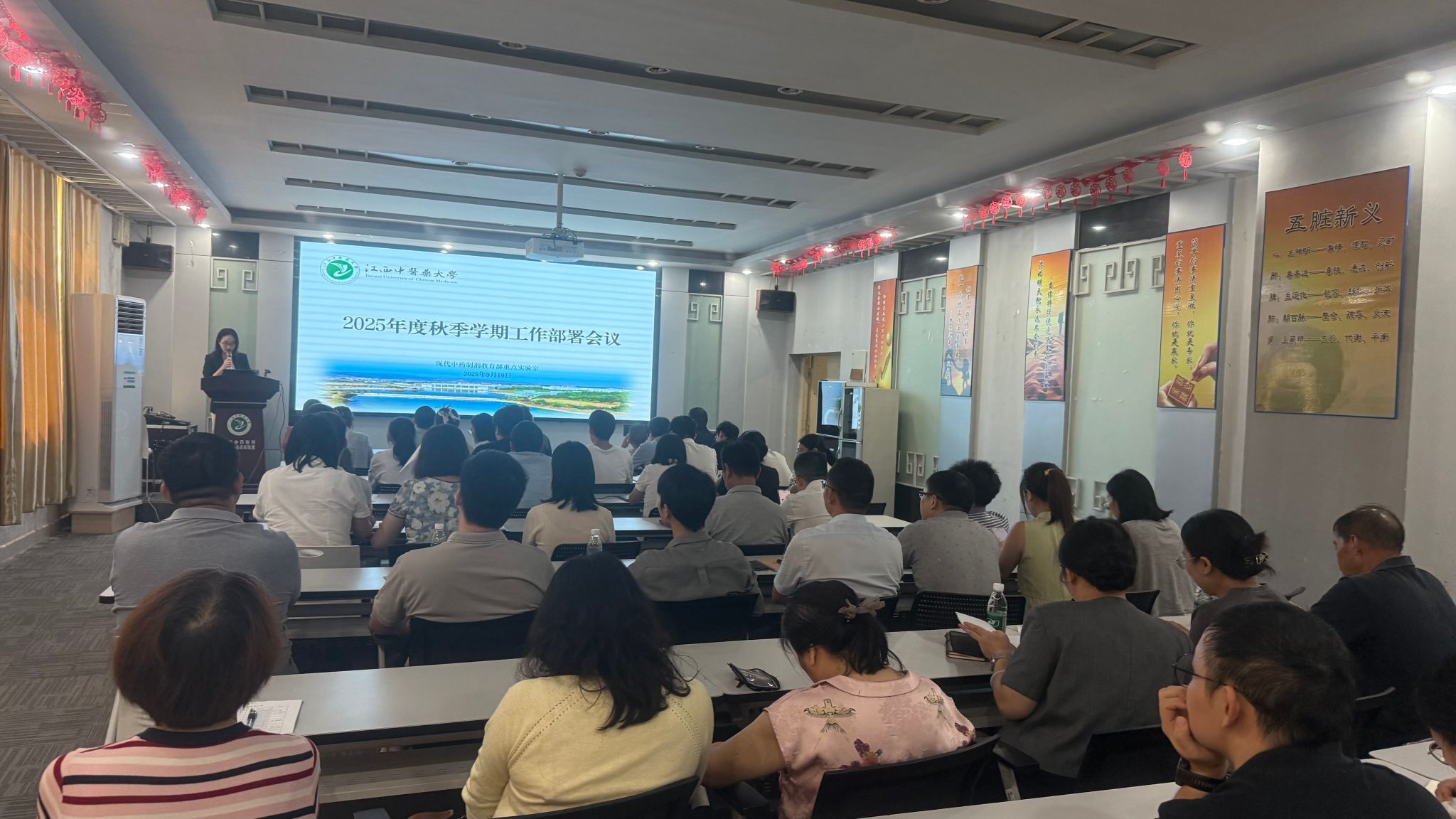 江中新闻网讯(记者 徐捷)2025年9月19日,现代中药制剂教育部重点实验室在实验大楼B209会议室召开秋季学期工作部署会议。实验室负责人主持会议,全体教职工参会。 会议首先传达了学校关于深入贯彻中央八项规定精神学习教育总结会议的相关精神,强调持续强化作风建设,要求全体教职工严守纪律规矩,进一步加强科研经费管理与学术道德建设,推动作风建设常态化、长效化。 会议还通报了学校科技工作会议精神,总结上半年部门2025年度高质量发展成效考核指标的完成情况,充分肯定了全体教师在国家级项目申报、科技成果等方面取得的进展,同时指出当前存在的不足,要求全体人员精准施策、加快突破,全力推动高质量发展。 围绕下半年重点工作,会议明确要坚持“高精尖缺”导向,聚焦中药制剂前沿领域和高水平团队建设,加大人才引进力度。同时,持续强化师德师风、科研诚信与实验室安全管理,要求全体教师严格落实安全管理制度,切实保障实验室安全运行。会后,全体教师签署了《江西中医药大学师德师风承诺书》。 |