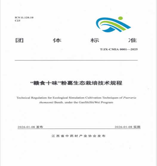江中新闻网讯(通讯员 吴波 朱武)1月8日,由我校朱卫丰教授团队牵头起草的《“赣食十味”粉葛生态栽培技术规程》(T/JX-CMIA 0001-2025)由江西省中药材产业协会获批发布并实施。